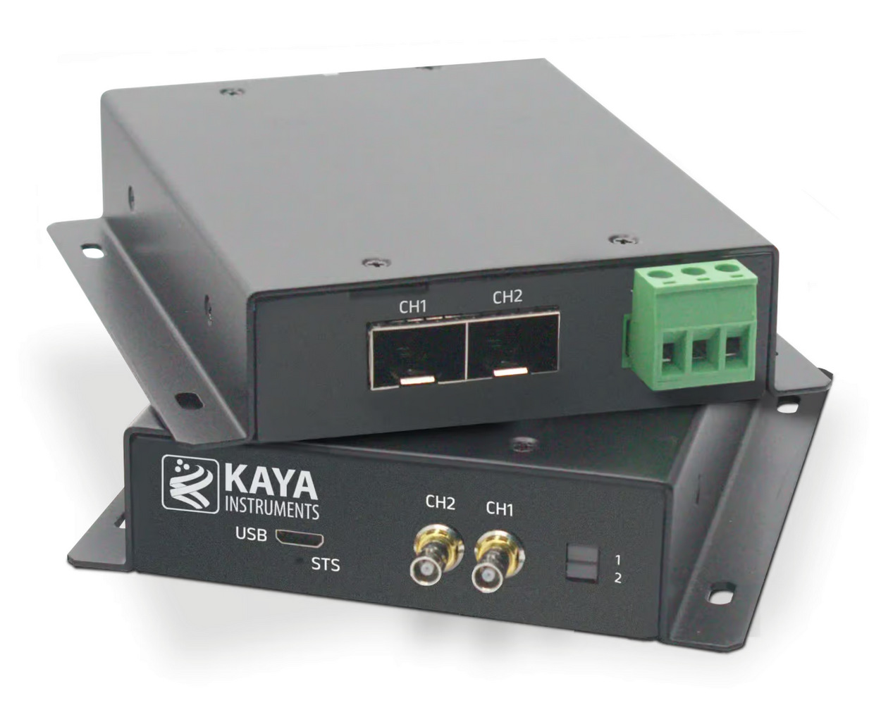 The KAYA Vision CoaXPress-to-CoaXPress over Fiber Dual Signal Converter, CXP-CXPoF, converts CoaXPress v2.x signals for transmission over fiber. The converter supports distances up to 80 km over single-mode fiber and up to 300 m over multi-mode fiber.